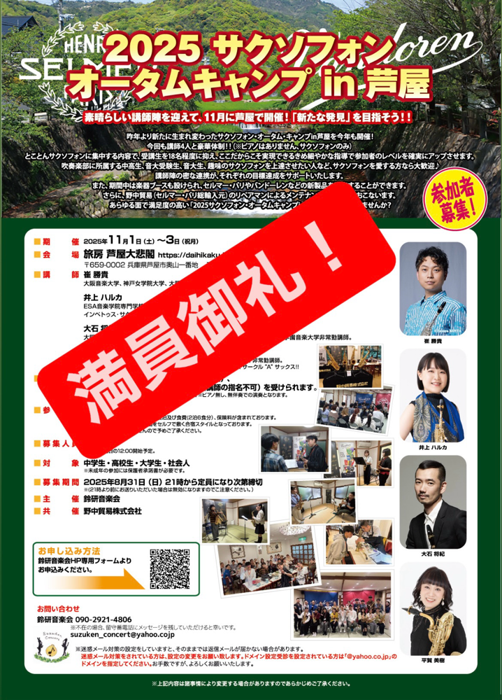 【感謝】サクソフォンサマーセミナ【満員御礼】