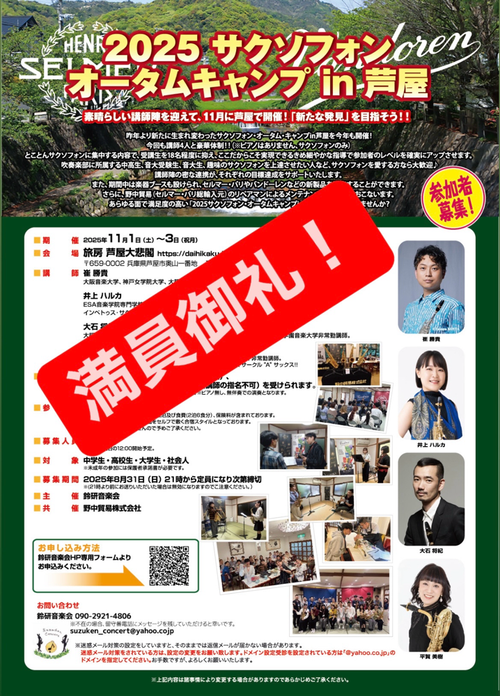 【キャンセル待ち】2025サクソフォンオータムキャンプin芦屋